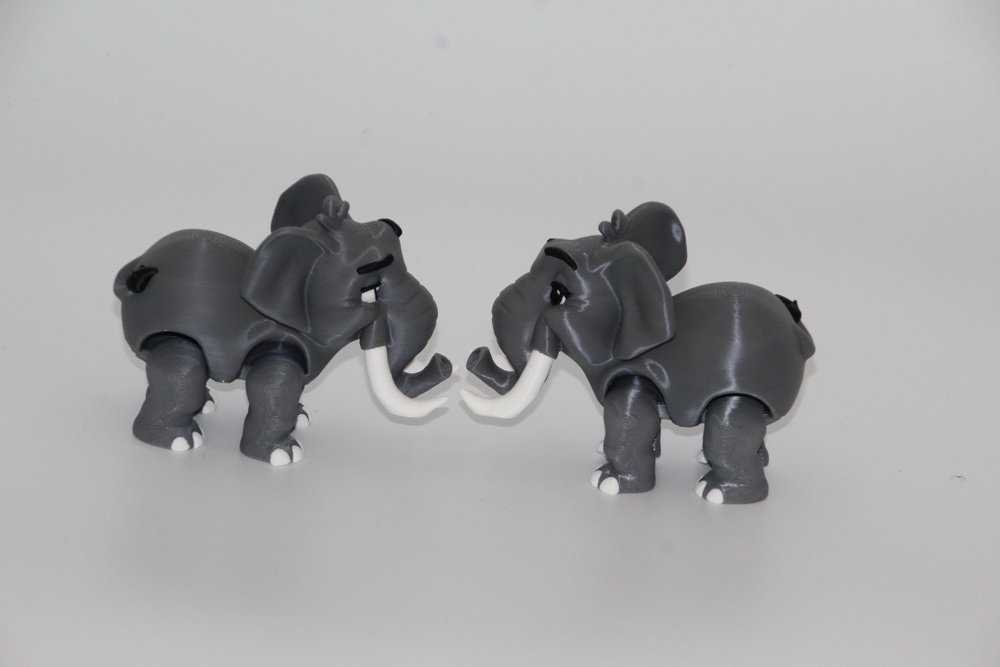 Giv hjemmet et strejf af charme med denne 3D-printede elefantfigur i et sødt, tegneserieinspireret design. Med store udtryksfulde øjne, buede stødtænder og små detaljer som negle og folder i huden, er denne figur perfekt til både børn og voksne, der elsker dyr og dekorative figurer.