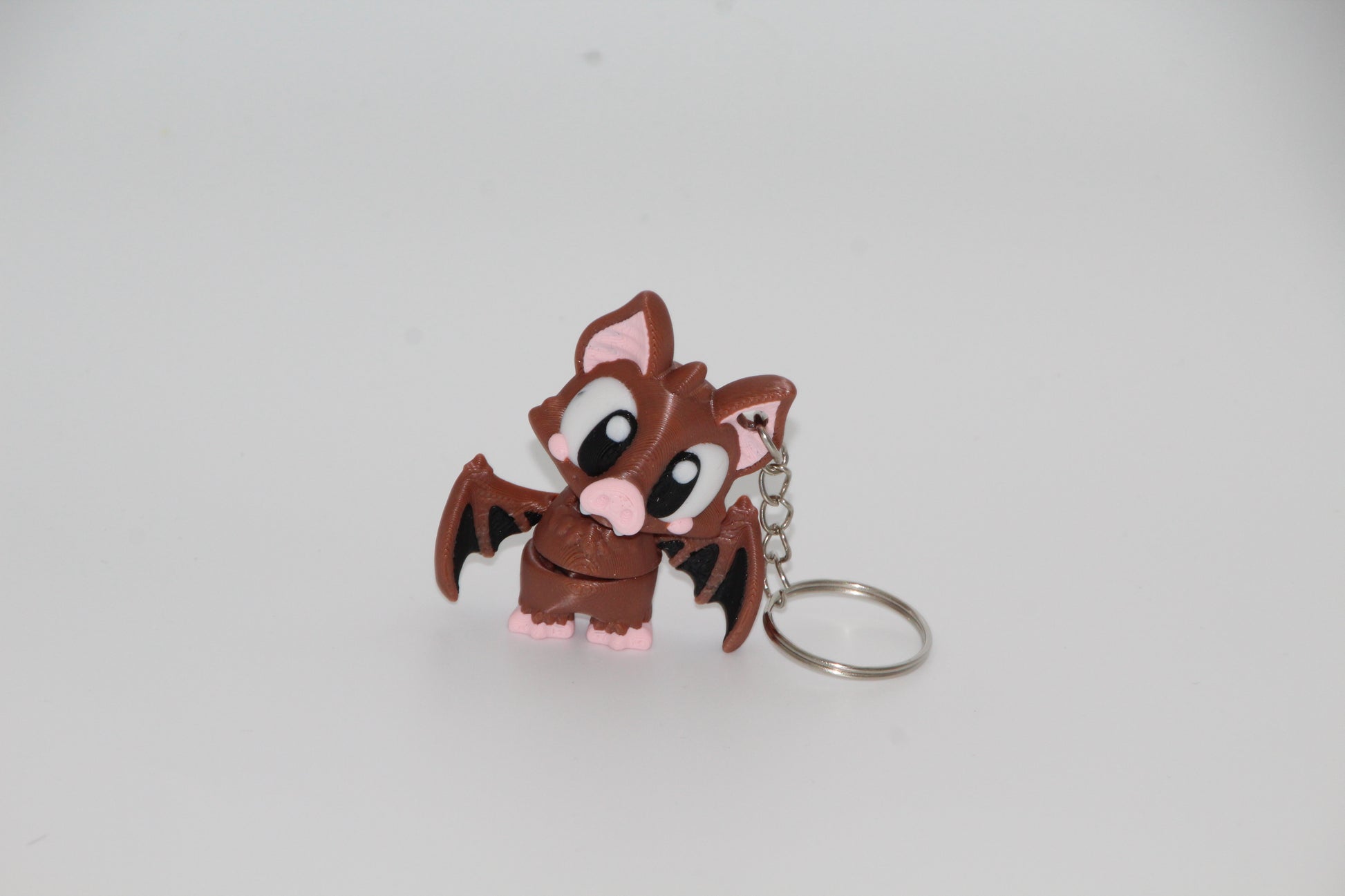 Tilføj et strejf af cuteness til dine nøgler med denne 3D-printede kawaii flagermus nøglering! Figuren har store udtryksfulde øjne, små detaljerede vinger og en nuttet farvekombination i brun, sort og lyserød. Perfekt til både børn og voksne, der elsker søde, sjove og unikke accessories.