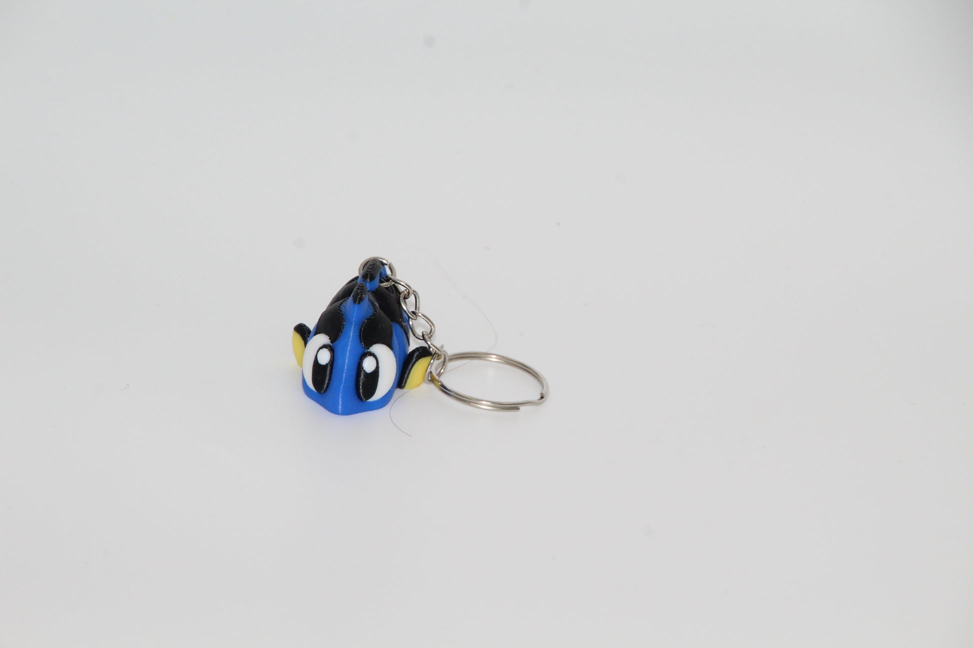 Gør dine nøgler ekstra charmerende med denne 3D-printede kawaii fisk nøglering! Den lille figur har et sødt, rundet design med store, glinsende øjne og flotte farver i blå, sort og gul. Perfekt som både gave, accessories eller som en unik tilføjelse til tasken, penalhuset eller nøglebundtet.